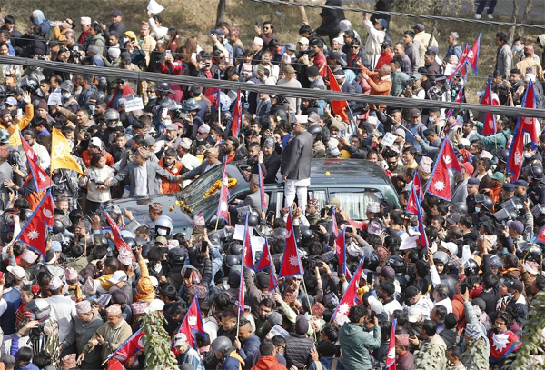राजा ज्ञानेन्द्र शाहलाई विमानस्थलमा स्वागत गर्न उर्लियो जनलहर